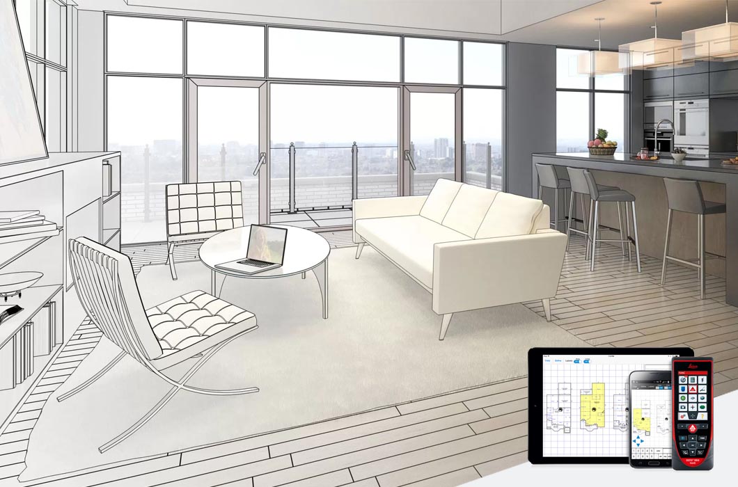 Crear bocetos detallados es tan fácil como tocar y deslizar con la punta de los dedos. Simplemente ingrese sus medidas, luego deslice y toque para dibujar las paredes exteriores e interiores. O bien, si usa un DISTO habilitado para Bluetooth, puede enviar sus mediciones directamente a su teléfono o tableta. A partir de ahí, defina rápidamente longitudes, ángulos, arcos y áreas. Luego, agregue símbolos personalizados y etiquetas para un boceto completo.