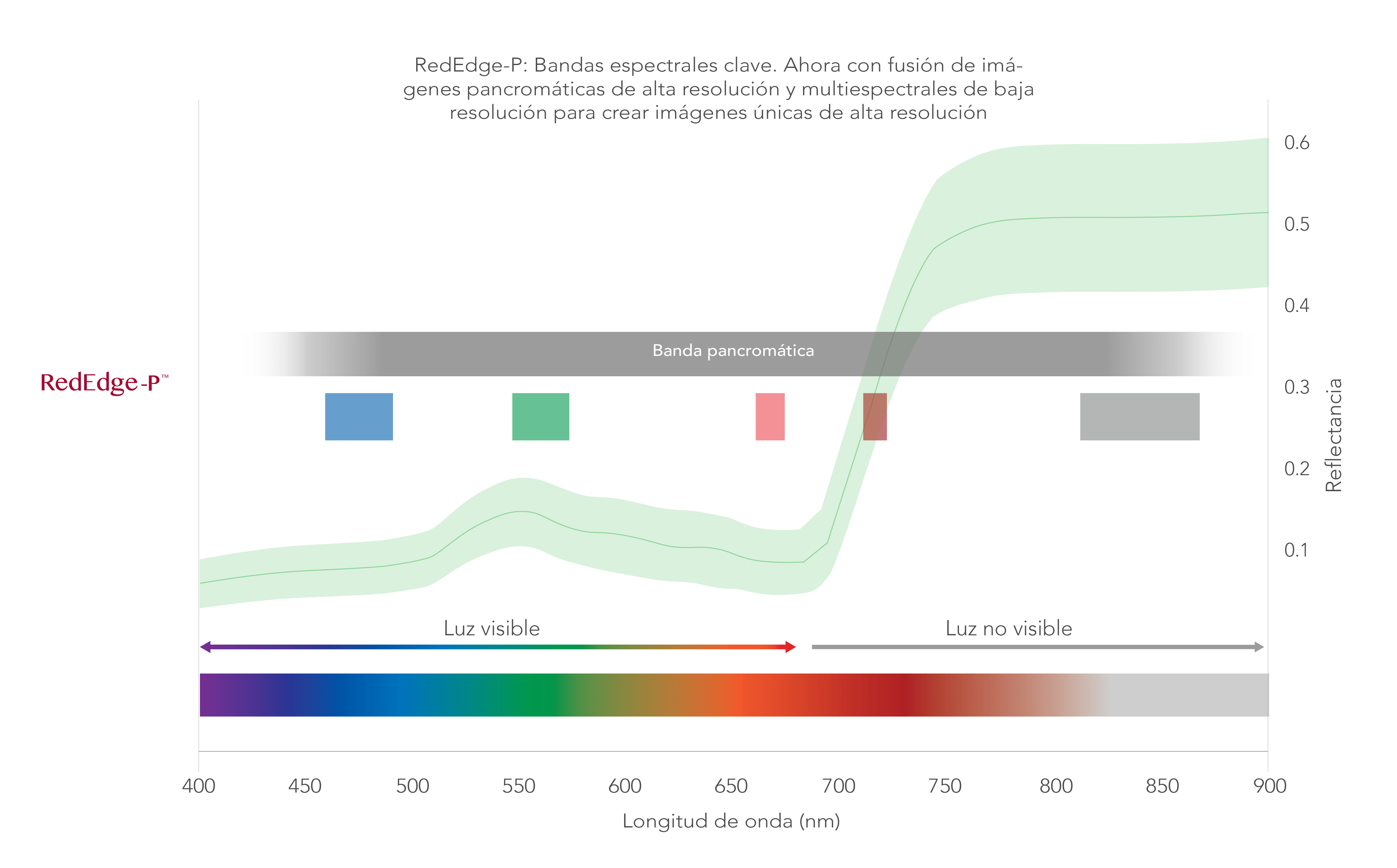 • Red Edge , (centro de 717 nm, 12 nm ancho de banda)