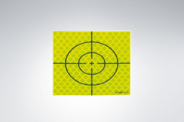 Dianas reflectantes autoadhesivas fluorescentes de alta visibilidad. Varios tamaños disponibles. Rango de medición de hasta 250m según las condiciones y el equipo usado.