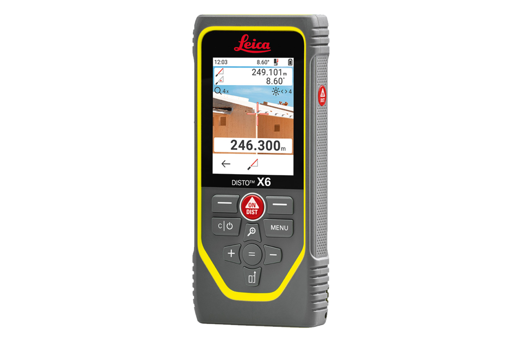 El medidor láser Leica DISTO X6 destaca por su adaptabilidad a entornos de trabajo desafiantes. Su estructura sólida ofrece protección contra el polvo y el agua con pantalla táctil y uso fácil.