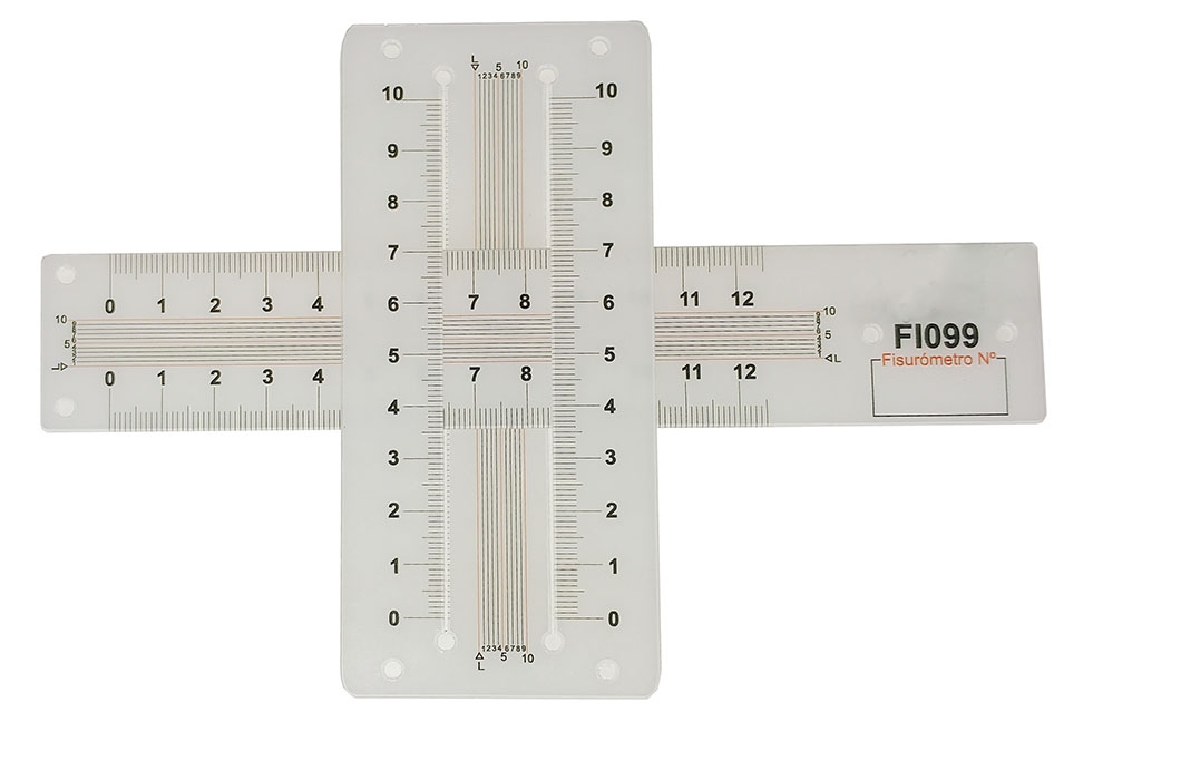 Medición de grietas en vertical, horizontal y rotación. Graduación en 0,1mm