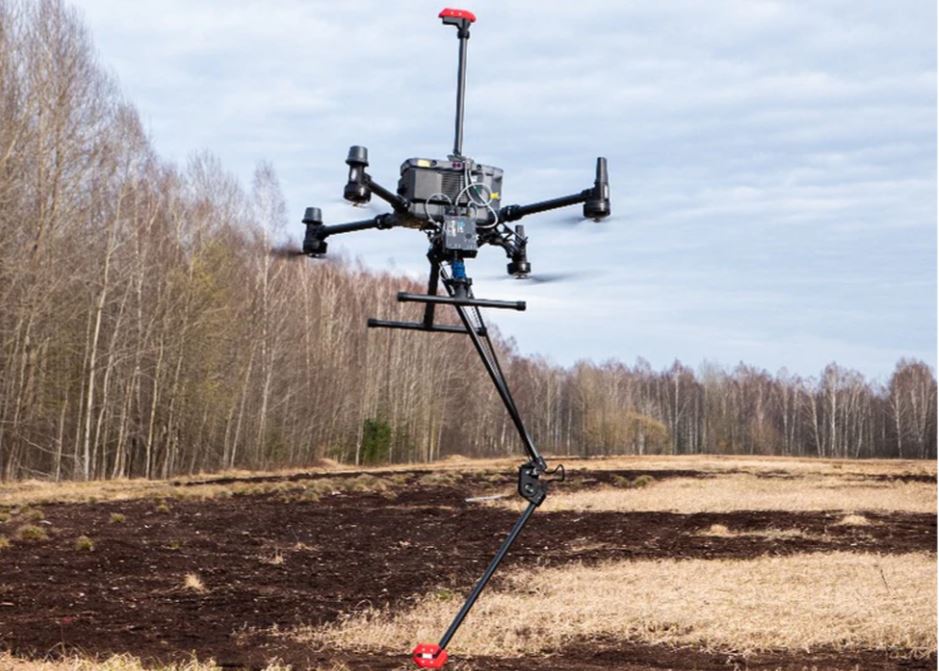 El diseño único del sistema permite volar con una distancia entre el sensor y la superficie extremadamente baja, comenzando desde solo unas pocas decenas de centímetros. Si el sensor toca el suelo o un obstáculo/vegetación, esto no provocará un accidente del dron. Esta capacidad es extremadamente importante para la búsqueda de pequeños objetos UXO en campos con vegetación.