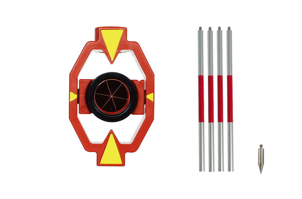 Miniprisma con bastón de 4 tramos económico recomendado para necesidades de precisión bajas. Cuenta con rosca de 1/4″. Incluye nivel esférico y minibaston de 4 secciones. Constante de adición a prisma 0