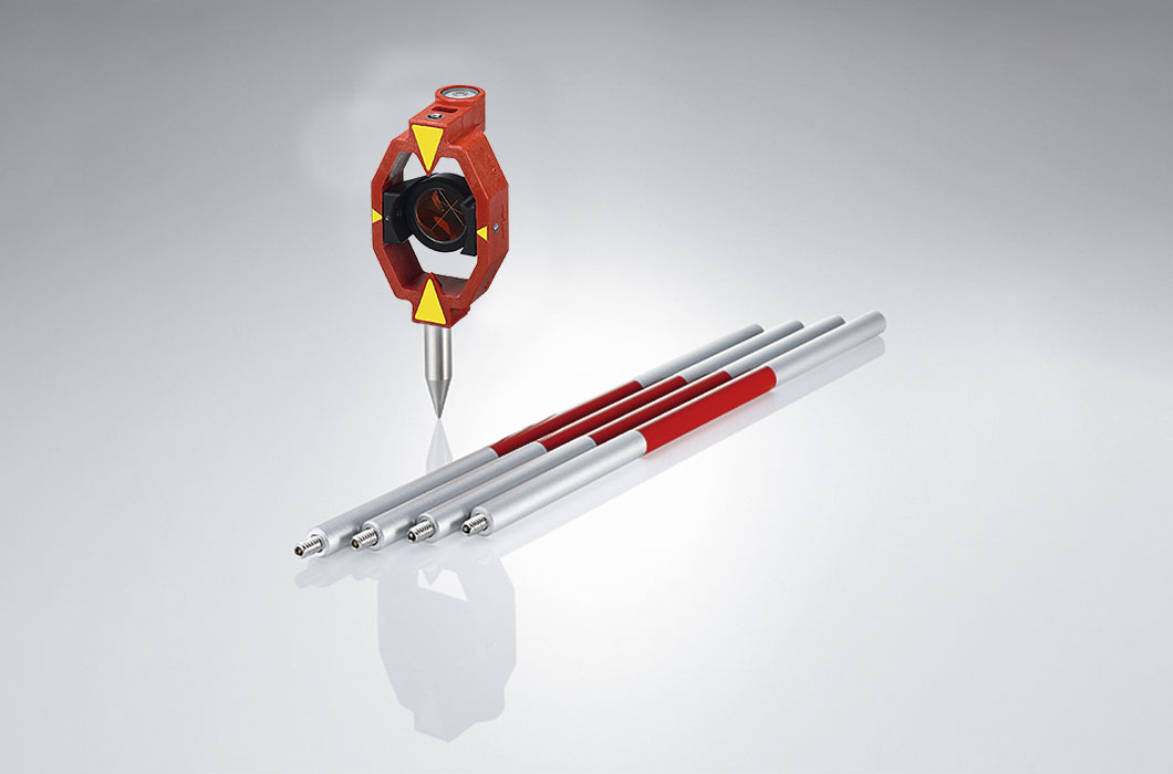 - Miniprisma en el soporte Leica GMP111 de polímero con rosca de ¼». Incluye nivel y minibastón de plomada Leica GLS115.