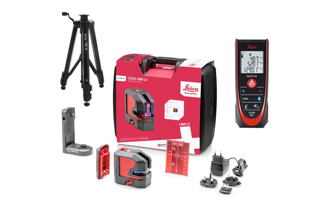 La alta precisión de Leica Lino L2 junto al distanciómetro láser Disto D2 y el trípode TRI 70, hacen el equipo completo de medición de Leica en un pack con un precio muy ajustado.