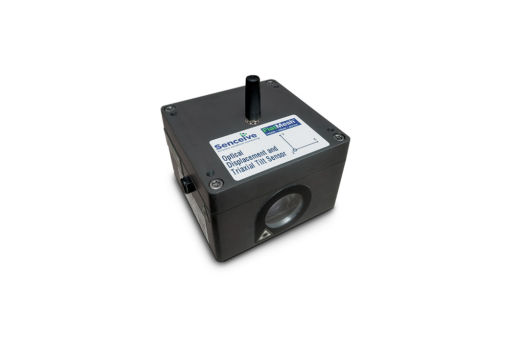 El nodo del sensor de desplazamiento óptico FlatMesh es un instrumento que utiliza medios ópticos para tomar mediciones de desplazamiento de alta precisión y pasarlas a través de la red de comunicaciones inalámbricas FlatMesh de Senceive a una puerta de enlace FlatMesh.
