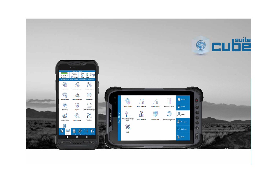Cube-a ha sido diseñado para admitir totalmente encuestas mixtas. Un levantamiento Cube-a admite puntos GPS y estaciones polares clásicas y mide en algún momento. Las estaciones polares se pueden configurar para ocupar puntos GPS previamente recopilados o en posiciones desconocidas calculadas utilizando el programa Free Stationing. Asimismo, el sistema de referencia GPS se puede ajustar para que coincida con un estudio polar existente en coordenadas locales. Cube-a es compatible con todas las estaciones totales Stonex mediante Bluetooth.