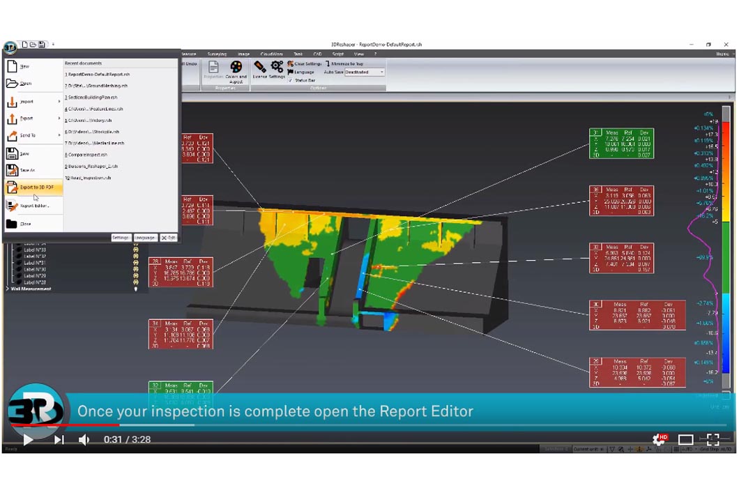 Cyclone 3DR incorpora nuevas funcionalidades que lo hacen más estándar y versátil como la compatibilidad con formatos como Revit o IFC, además podrá generar informes detallados con los formatos estándares del sector.