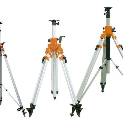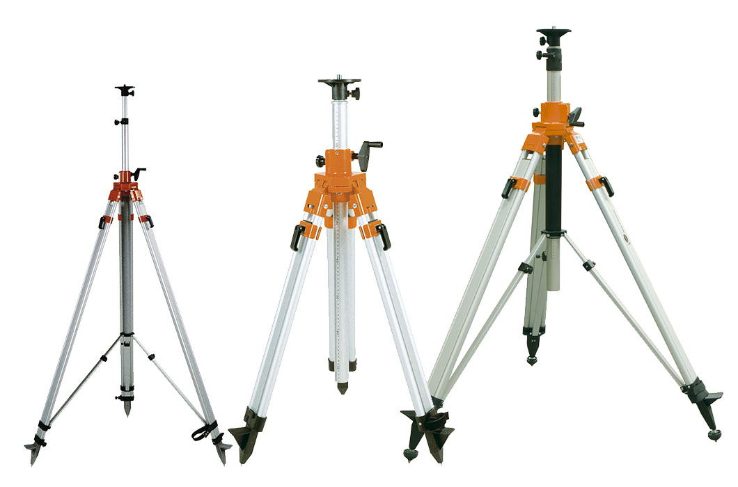 Trípodes de manivela para construcción. Modelos ligeros, semipesados, pesados con tirantes, de doble columna, con accionamiento directo e indirecto y diferentes alturas y aplicaciones.  Niveles láser de construcción, niveles para control de maquinaria, niveles ópticos y digitales, taquímetros y teodolitos.